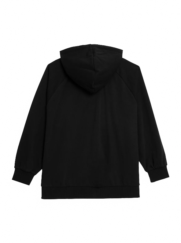 Brand: OUTHORNHanorac pentru femei oversize cu doua buzunare deschise in fata si gluga integrata reglabila cu snur negru / OUTHORN